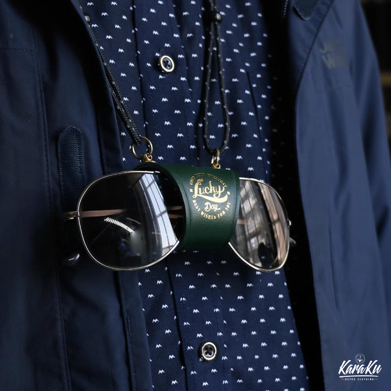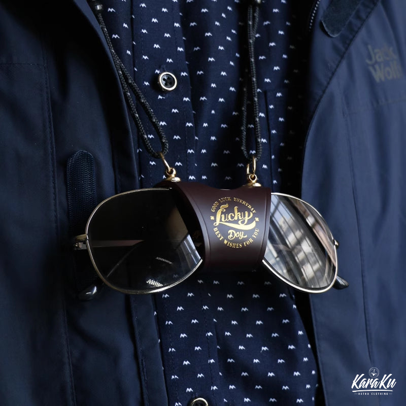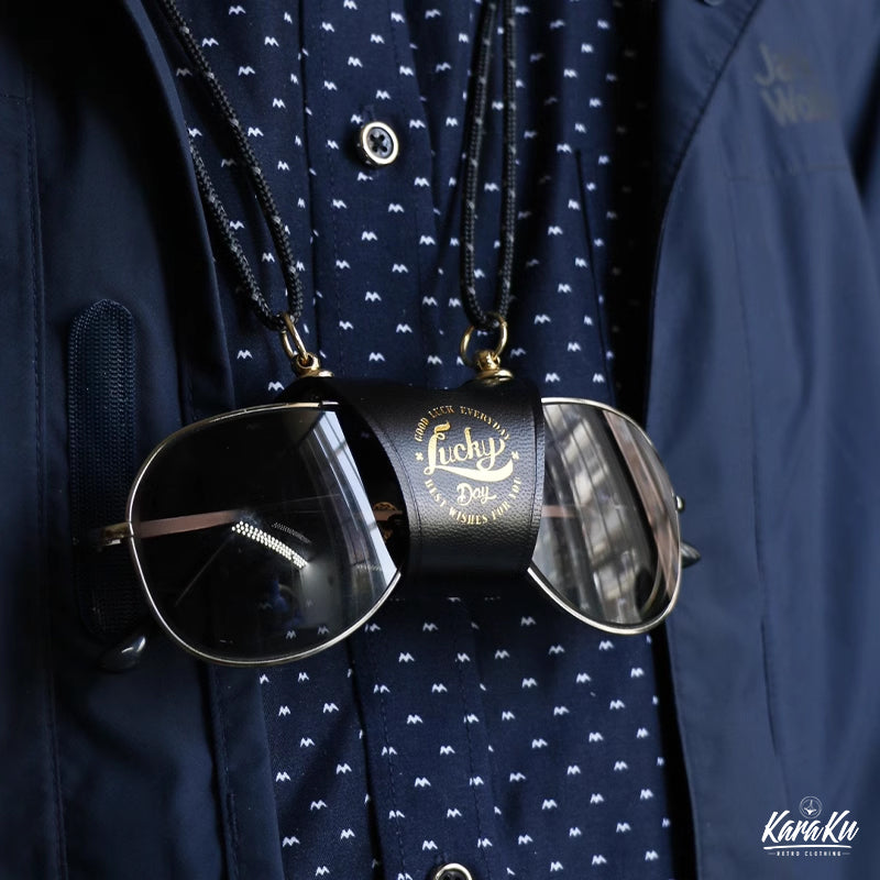 人気の「Lucky Day」モチーフを箔押ししたメガネホルダーが登場!軽量でずれ落ち防止のホルダーとしてだけではなく、おしゃれなアクセサリー小物としてメンズやレディースにも人気です。実用性と、ファッション性、そして耐久性まで兼ね備えた眼鏡ホルダーです。サングラス、メガネを、便利に、おしゃれに。後ろの調節レザー付きで最適な長さに調節できます。お好みの位置で固定してご使用いただけます。