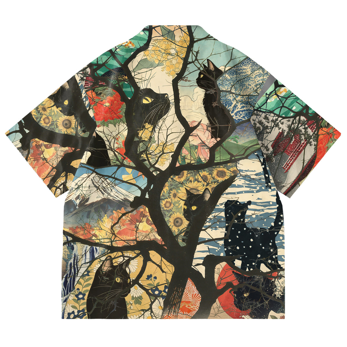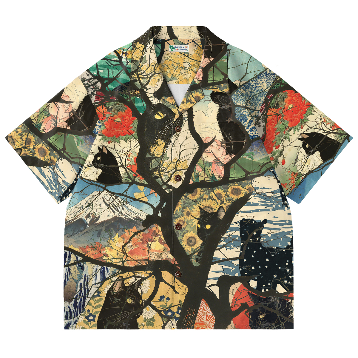 【予約】「黒猫の四季旅」絵巻 浮世絵風プリント入りアロハシャツ
