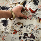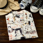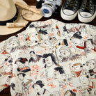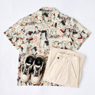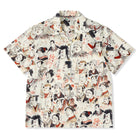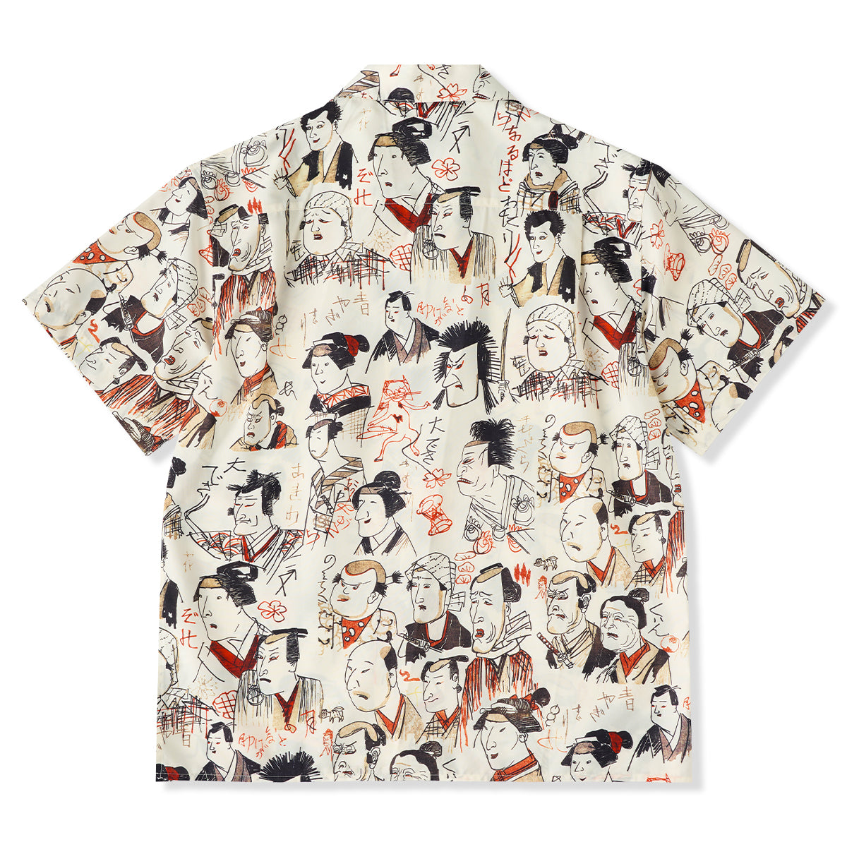 歌川国芳の風刺画《荷宝蔵壁のむだ書》をモチーフにした、遊び心あふれるオープンカラーシャツ。落書きのように描かれたユーモラスな人物や文字を、現代的な感覚で再構築。どこかゆるく、ちょっとシュールな表情たちが、見るたびにクスッと笑える一枚です。さらりと羽織れるオープンカラー仕様で、カジュアルにもアートにも映える仕上がり。江戸の“いたずら心”をまとって、日常にさりげない刺激を添えるシャツです。