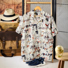 歌川国芳「荷宝蔵壁のむだ書」落書き風プリントオープンカラーシャツ