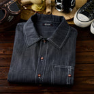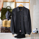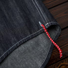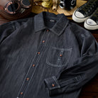 赤ヒモ付き アンカーボタンホワイトステッチデニム長袖シャツ