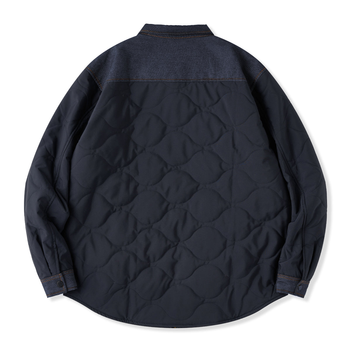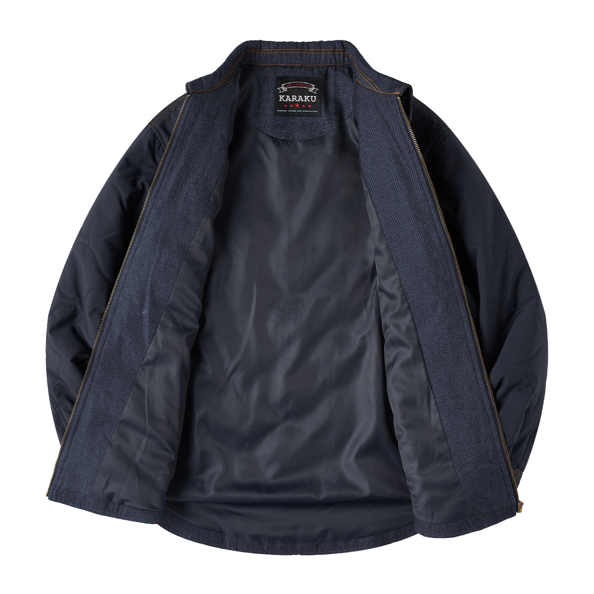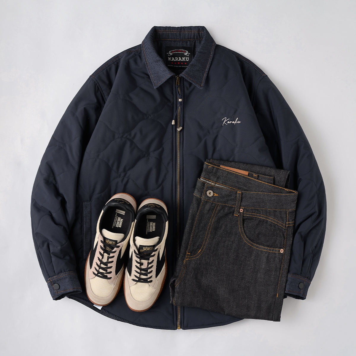 【予約】「KaraKu」ロゴ刺繡 デニム切替ひょうたんキルト中綿ジャケット