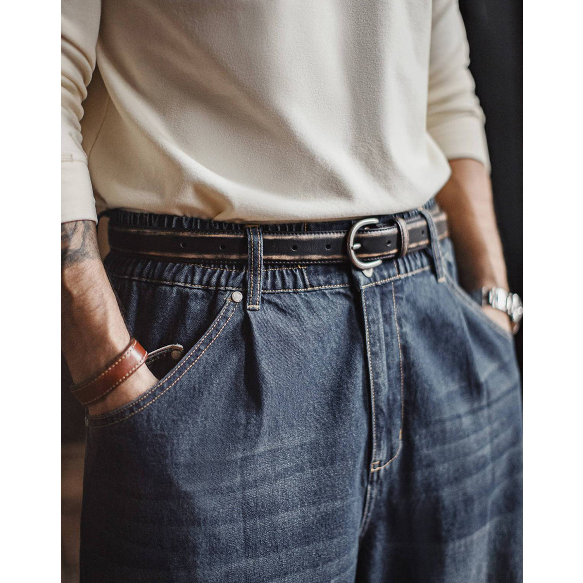 ベルトは高品質ななめし革を使用して、自然な風合いと手作りの温かみが感じられます。表面には独特のヴィンテージ仕上げが施されて、使用されるにつれてエイジングが楽しめるデザインになっています。