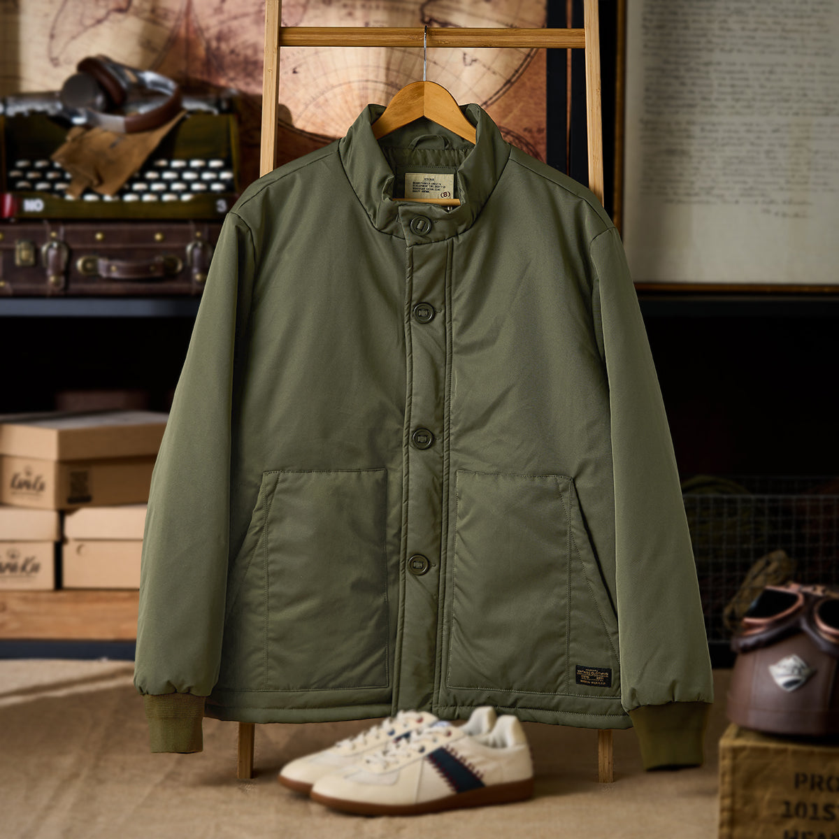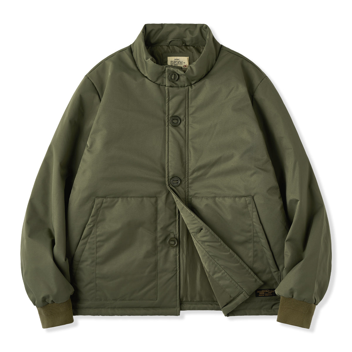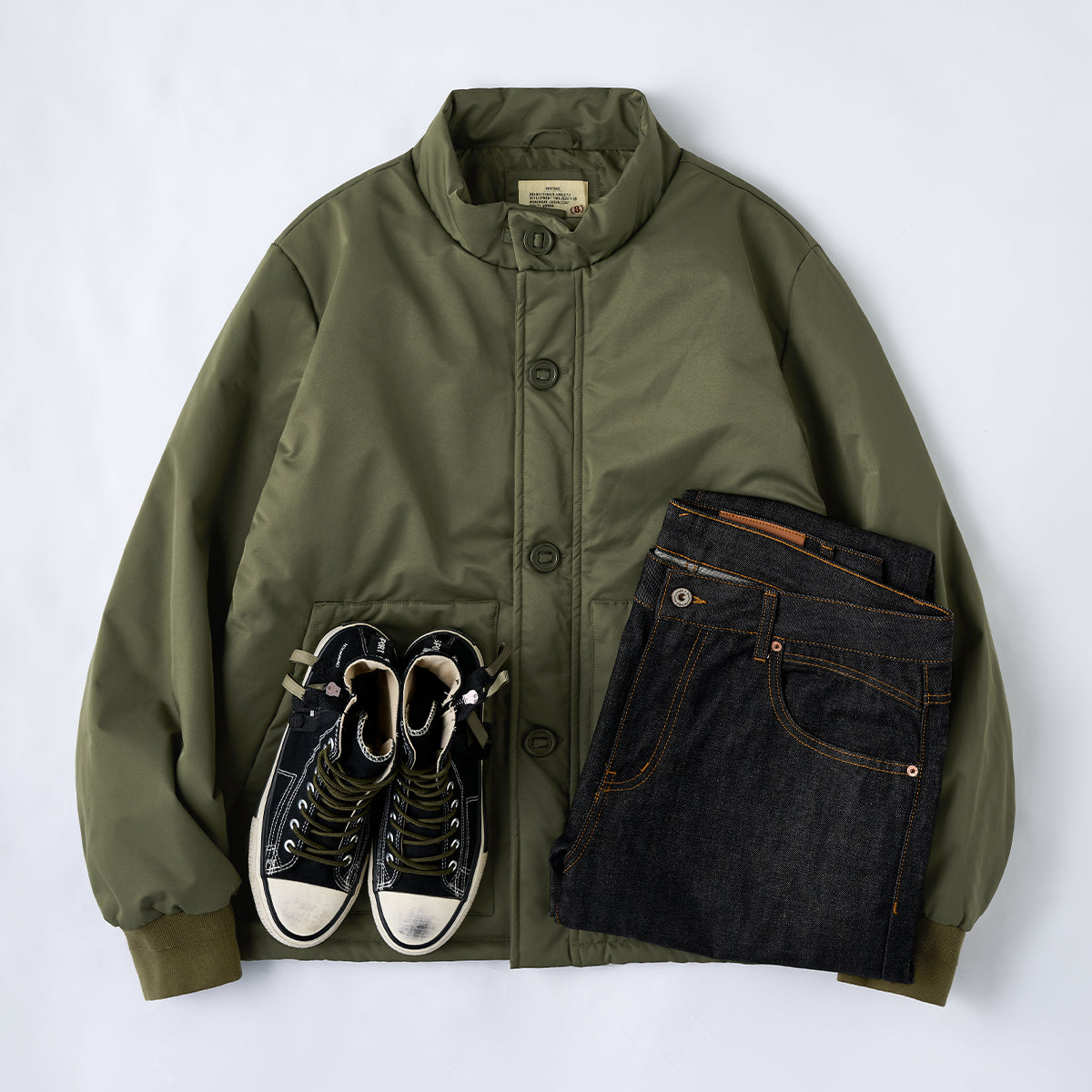 今回はフライトジャケットの中でも元祖と呼べるA-1をデザインソースにした改良された中綿タイプボンバージャケット。