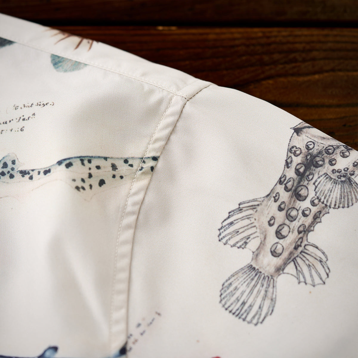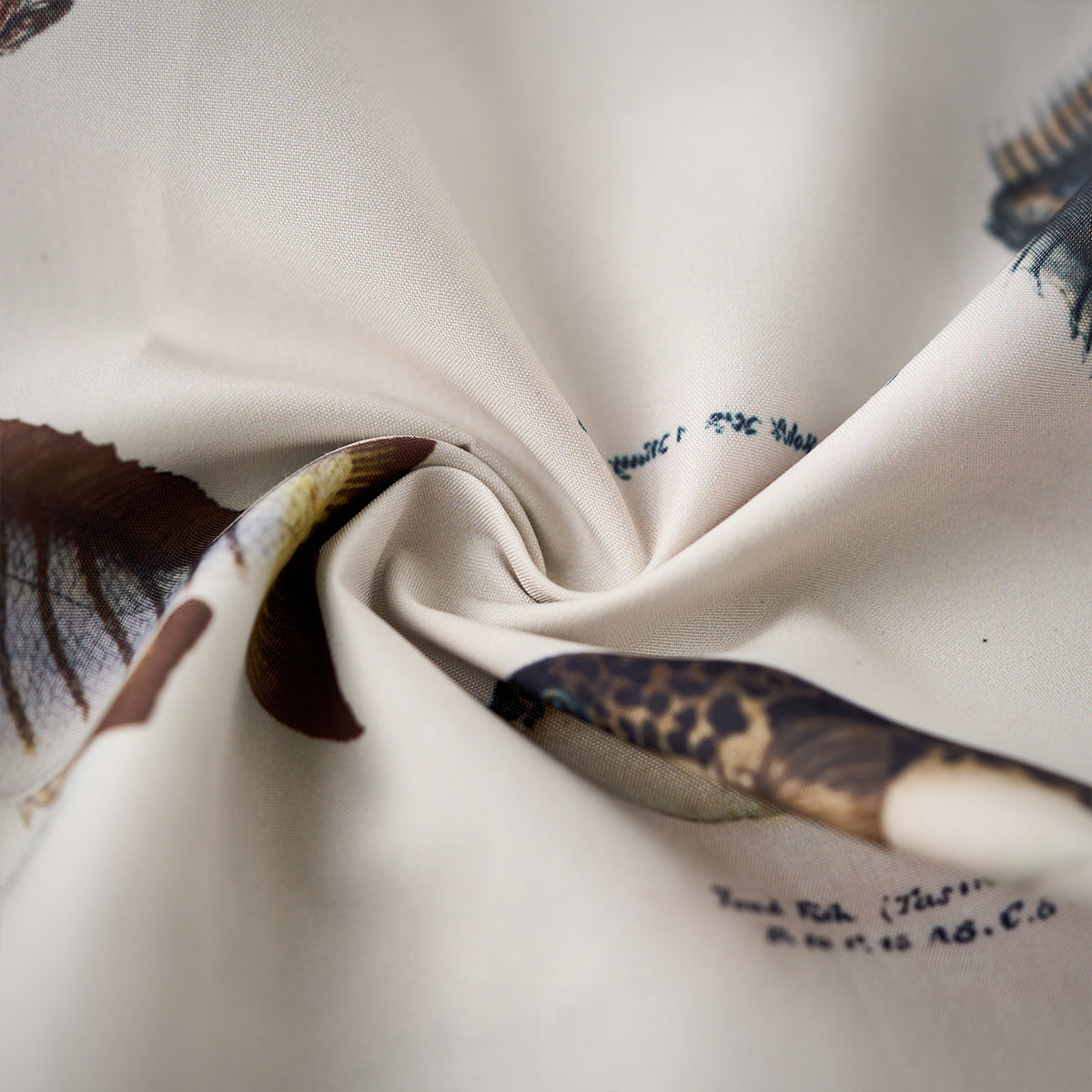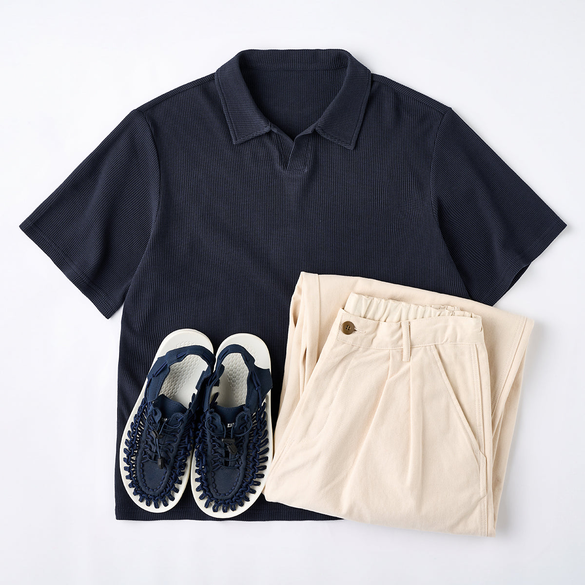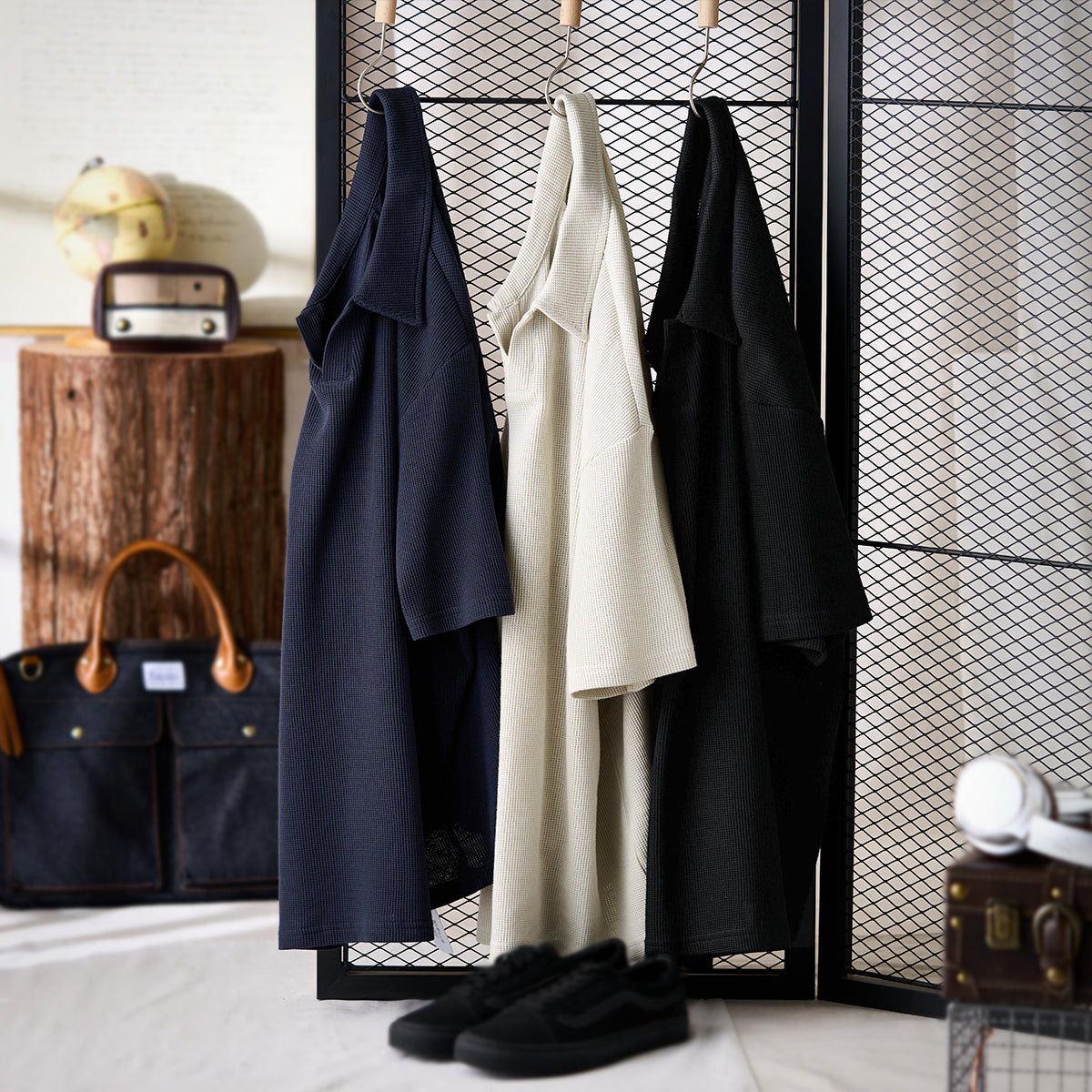 防水性と防風性にすぐれたポリエステルを採用し、ほんのりと上品な微光沢のある、軽い着心地に加え、さらっとした肌触り、水洗い処理され、シワの絶妙の質感と自然の色落ちで表現してる古着感は特徴となる。