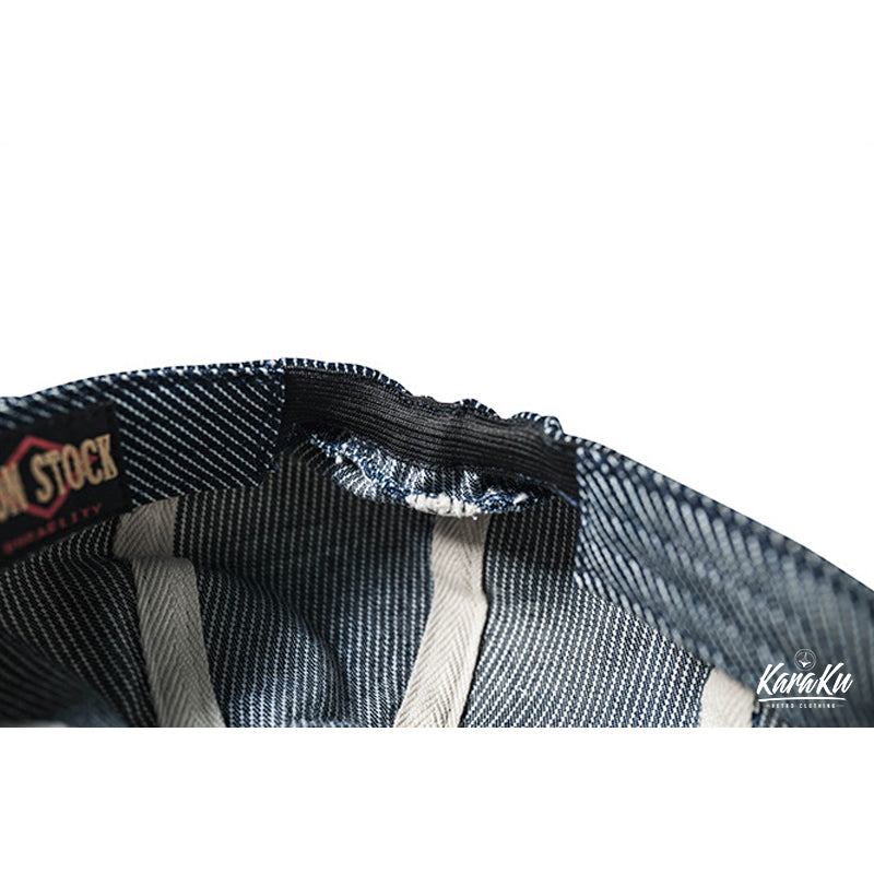 ②先染めコットンデニムを使用し、生地表面に特有の光沢感があり、他素材とは違った経年変化が楽しめる。さらに、耐久性にも優れており、長く愛用できる。