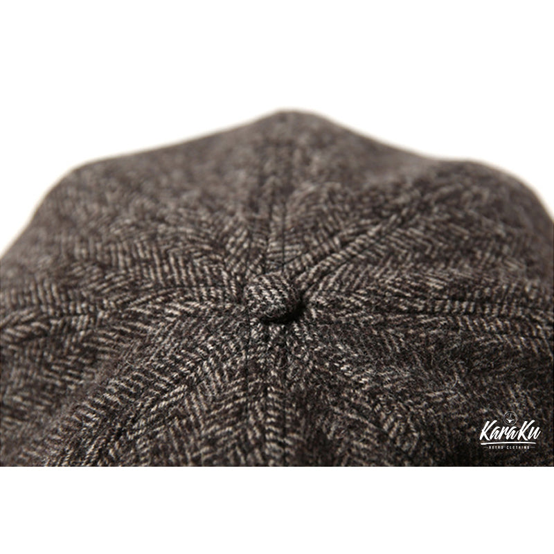 頭頂部トップの天ボタンを中心に、8枚枚の布を縫い合わせたふっくらとしたボリュームのあるフォルムが特徴。