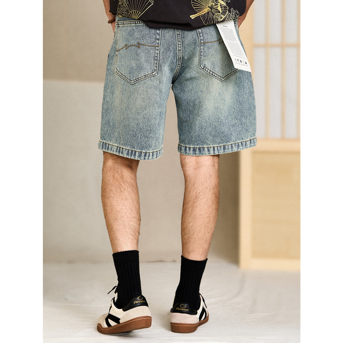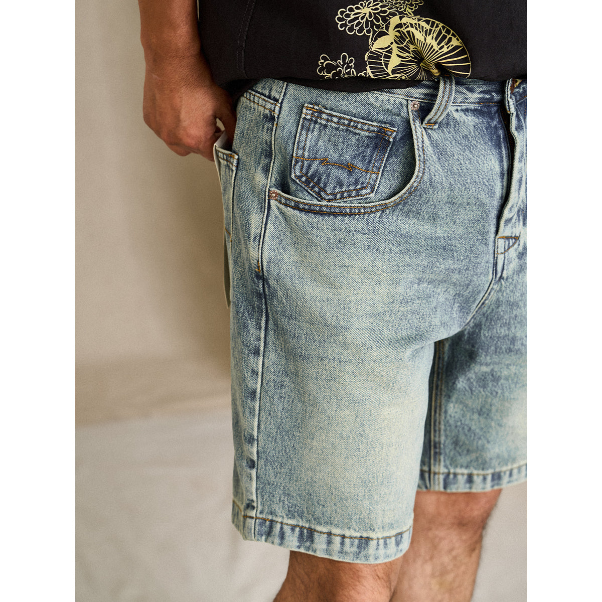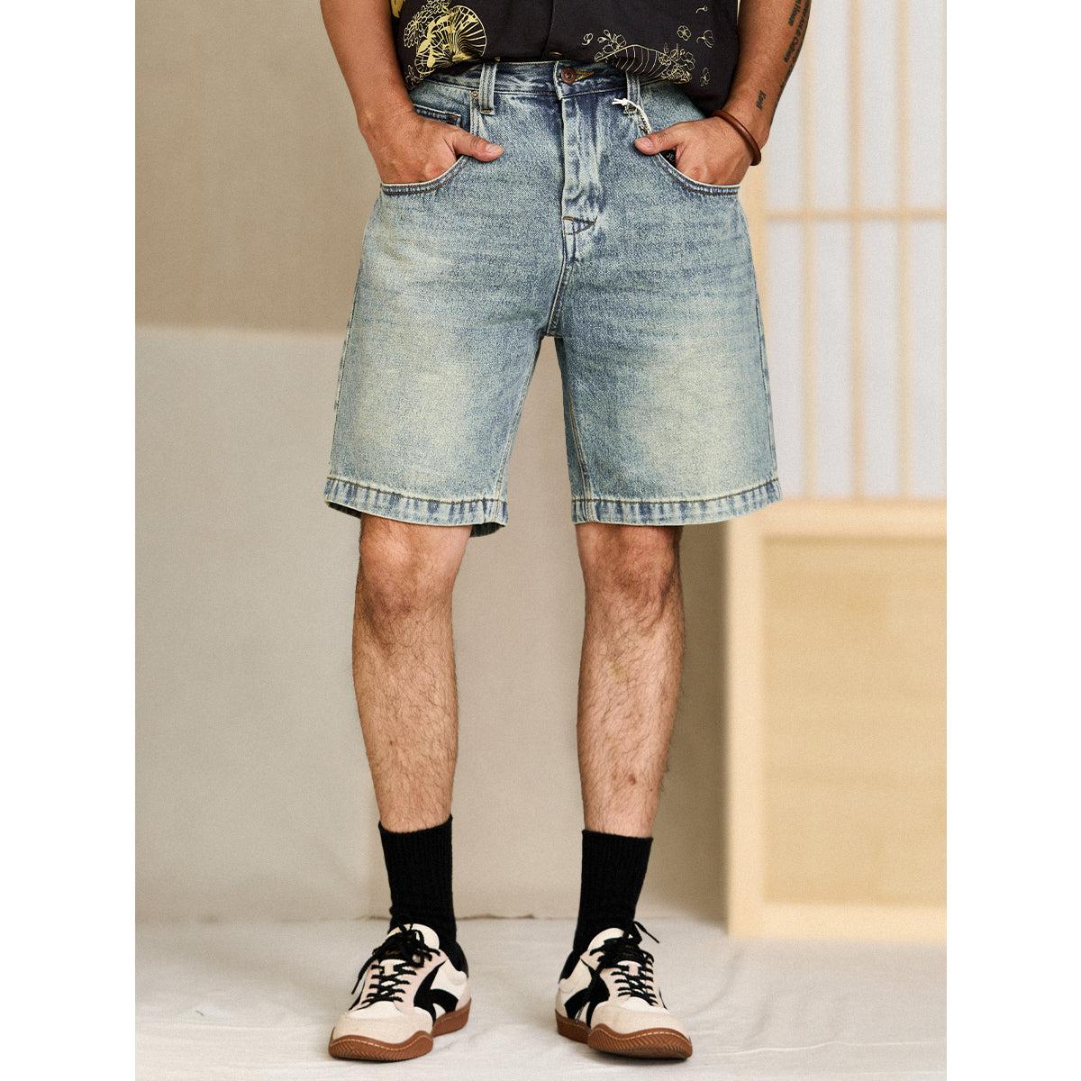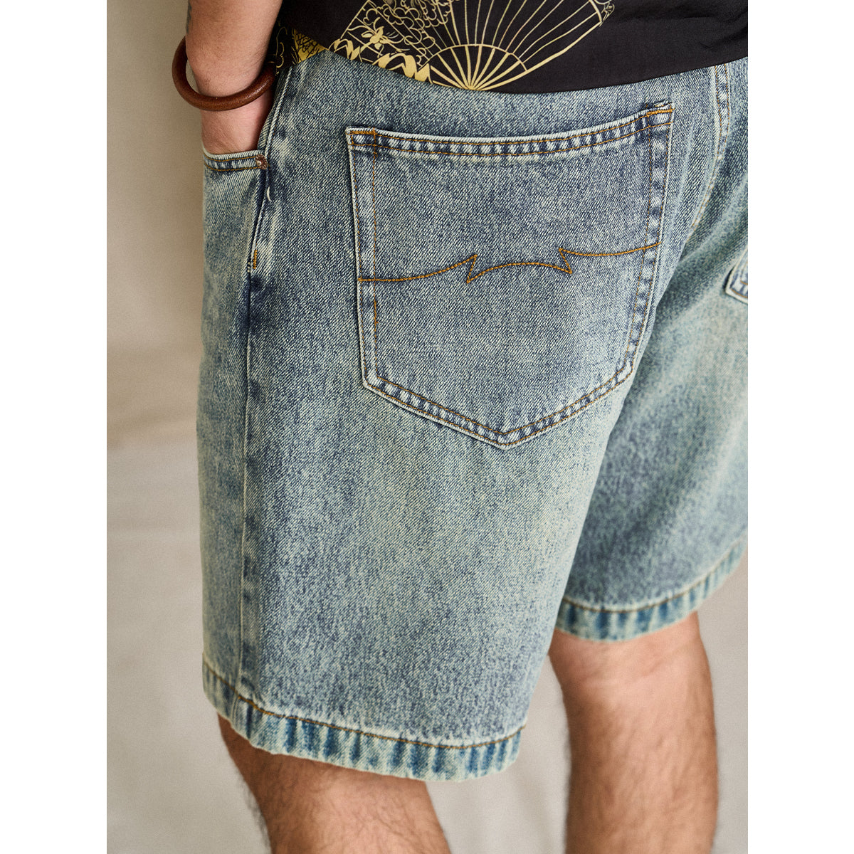 ヒゲ加工 ポケットステッチデニムショートパンツ
