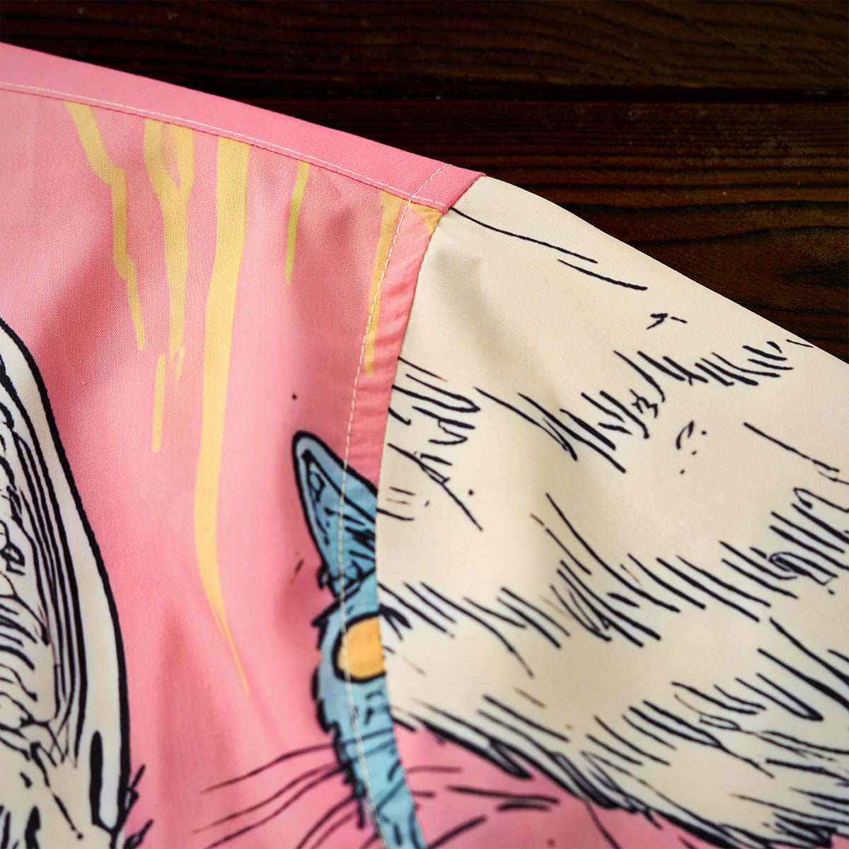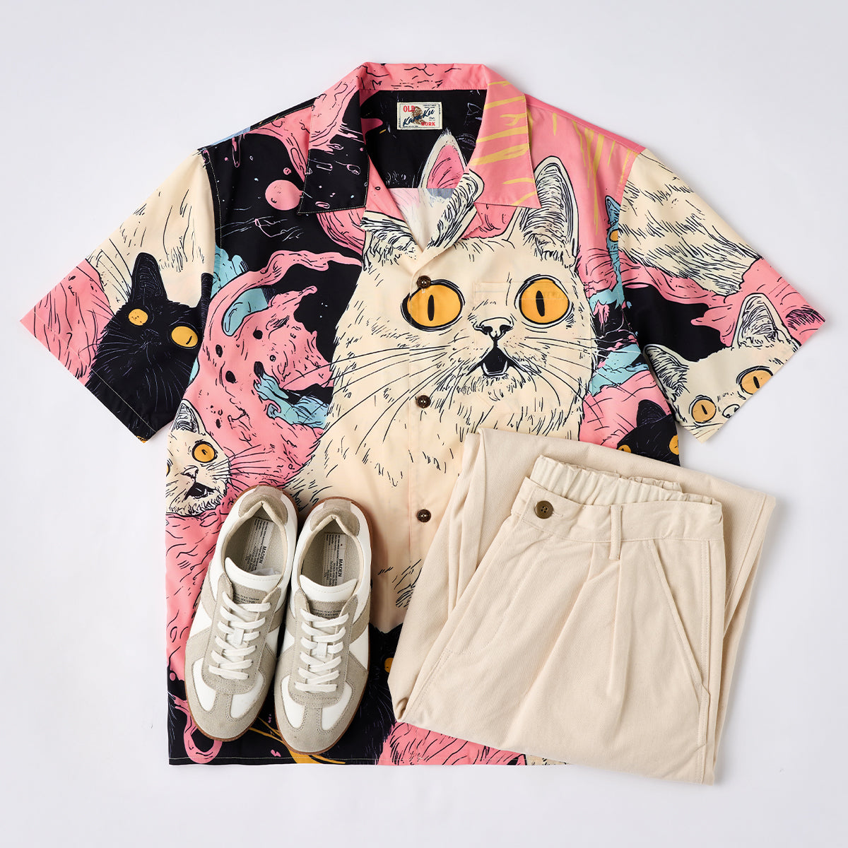 ピンク系の絞り染めグラデーションが目を惹く、幻想的なグラデーションの中に隠れたデザイン性がある。カラーが強く出すぎないように同系色で纏め、コーディネートに取り入れやすい。