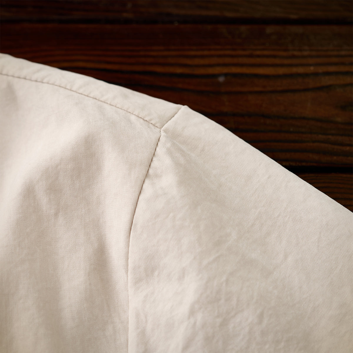 春や秋にカットソーの上から羽織るライトアウターとしてオススメ。デニムやチノパンなどのカジュアルなボトムスと合わせても、品よく着こなせる。