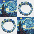 夜空をそっと閉じ込めたような、幻想的な輝き。ゴッホの名画「星月夜」からインスピレーションを受けた、深いブルーとほのかなゴールドのガラスビーズが織りなすブレスレットです。透明感のあるガラスビーズは、まるで星が瞬く夜空や、月の光が水面に映る情景を思わせる繊細な美しさ。ひと粒ひと粒に表情があり、手元にさりげない個性と詩的なニュアンスを添えてくれます。日常使いはもちろん、特別な日のアクセントにもぴったり。シンプルながらも心に残る、静かな存在感を放つ一本です。
