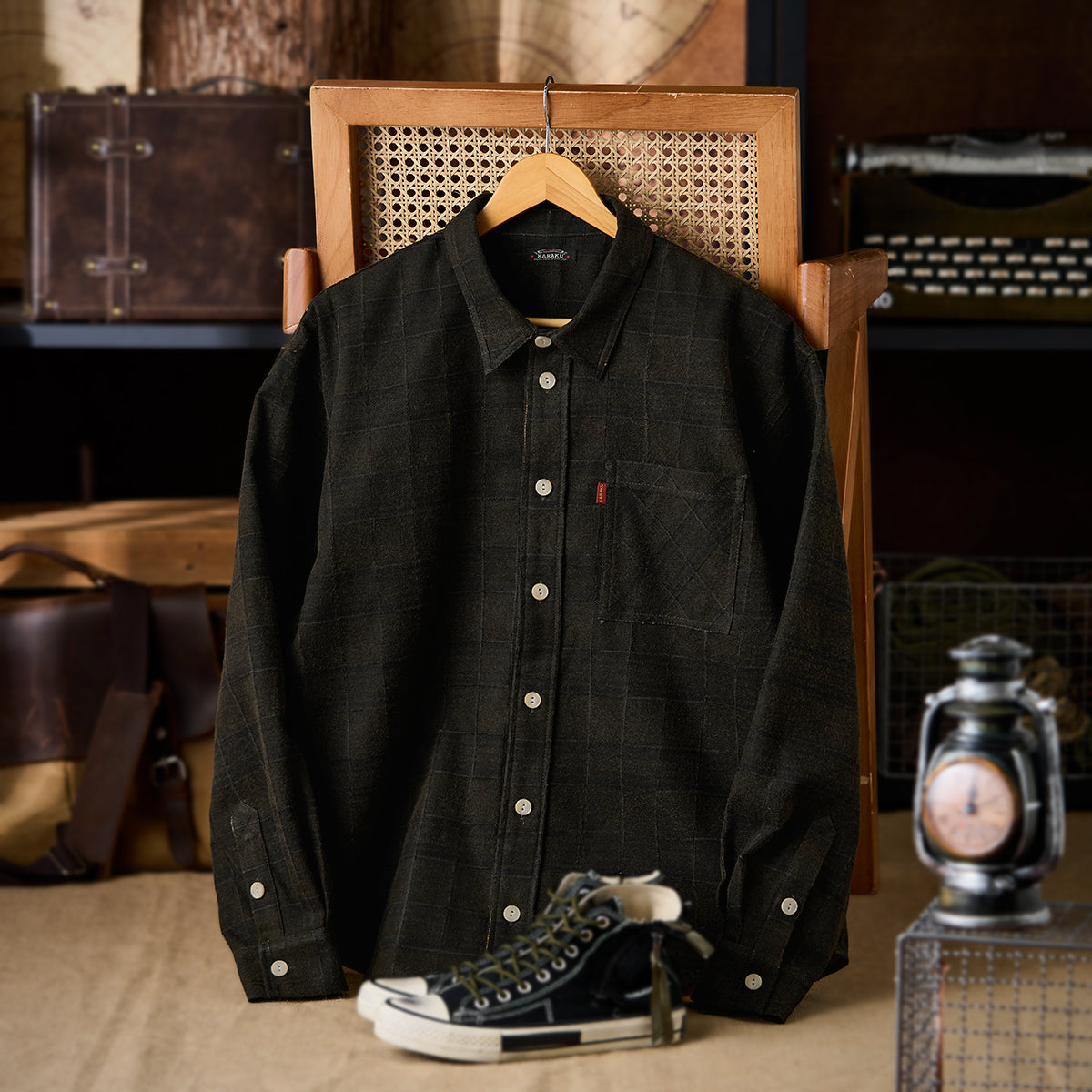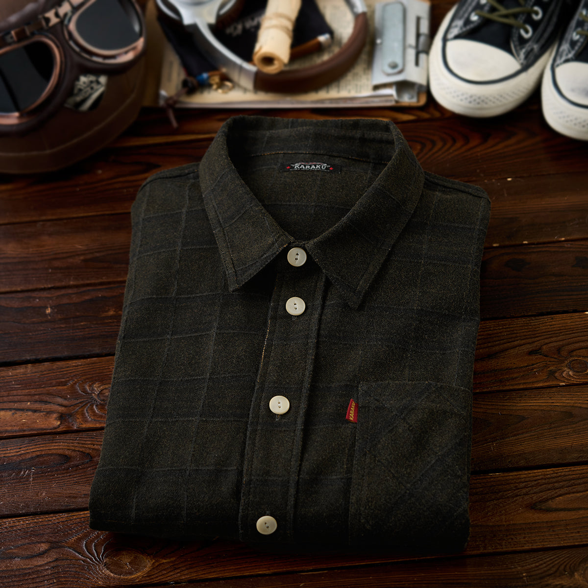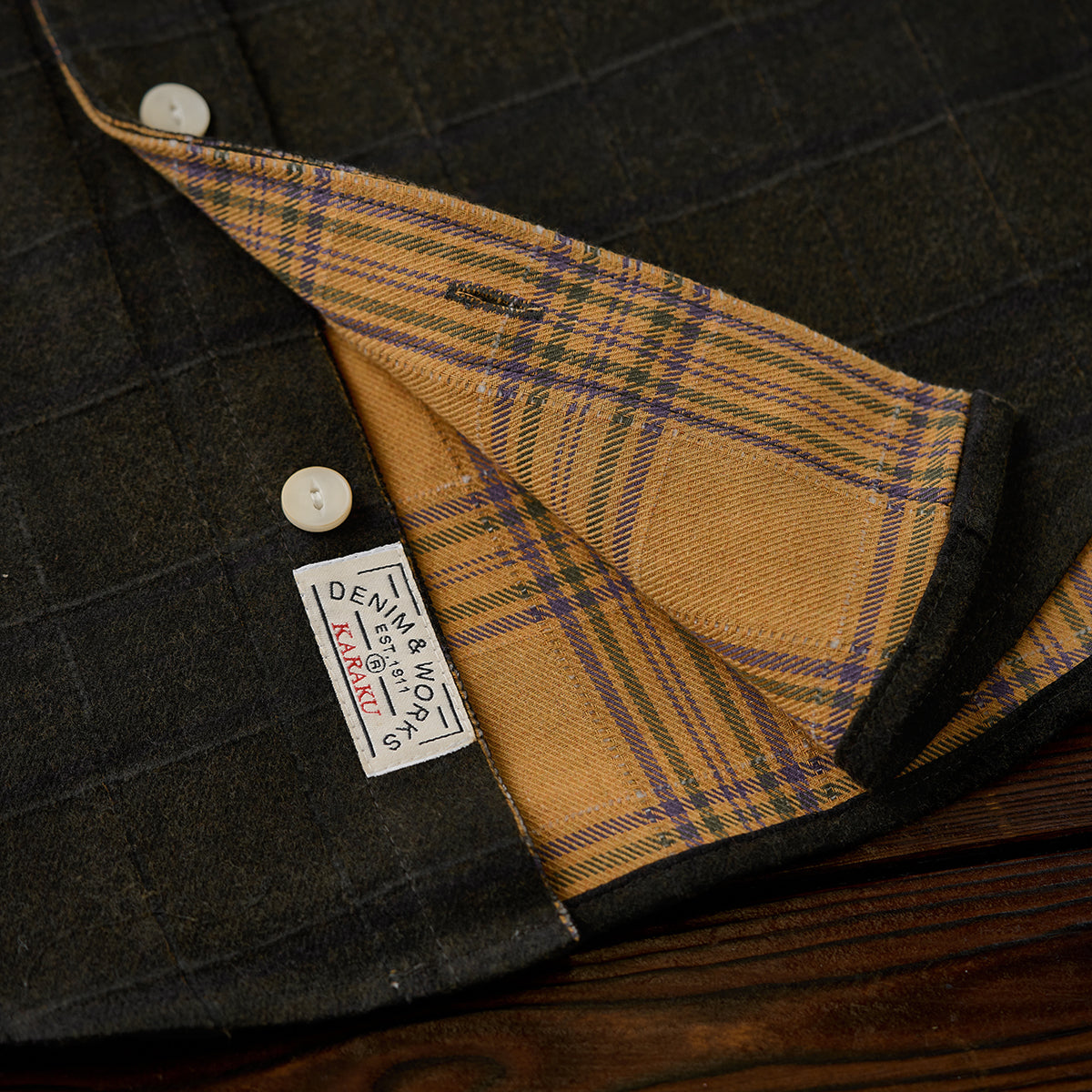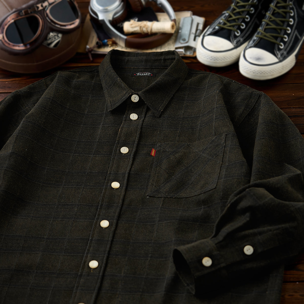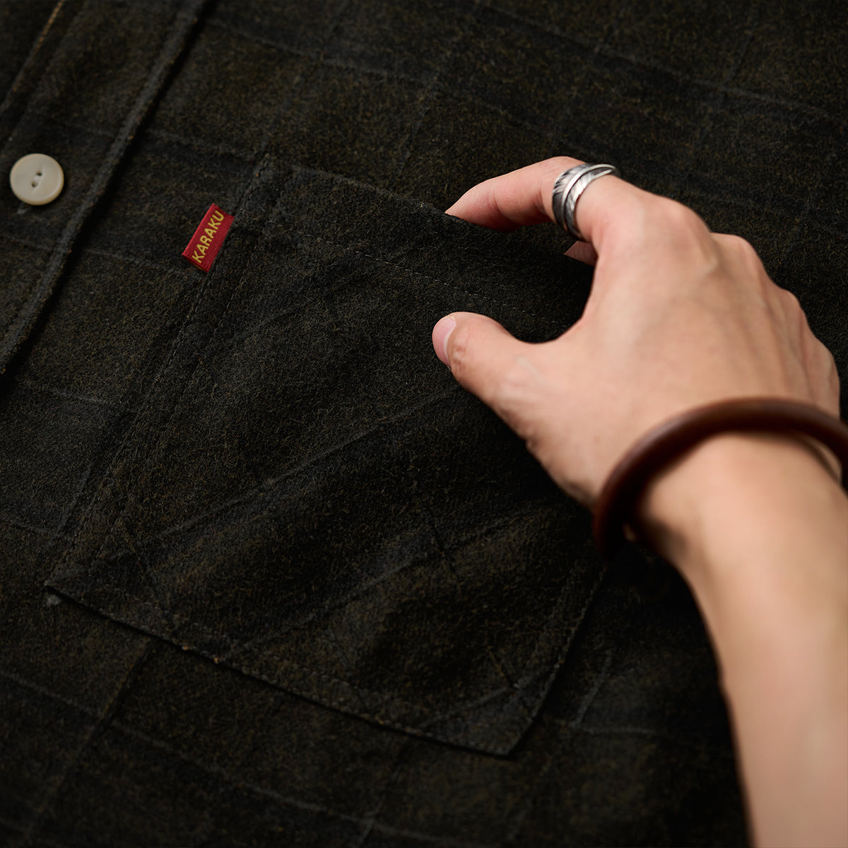 【予約】再構築 レーザーカット加工&フロッキーコーティングチェック長袖シャツ