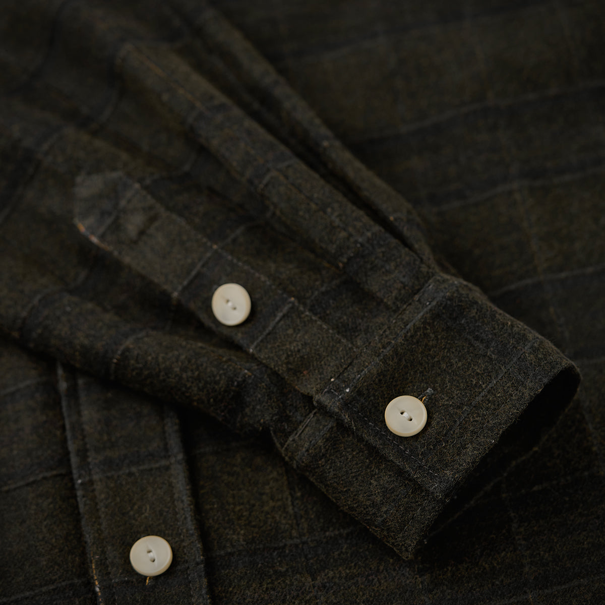 裾の仕立てはカーブを持たせることで、カジュアルさとシャツ特有の端正さを両立しています。