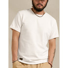 軽やかな風合いと立体感のあるデザインが魅力のエアーレイヤードポケットTシャツ。袖口にはターコイズ風の装飾ボタンをあしらい、さりげないアクセントで夏らしい抜け感を演出。さらに、首元にはVガゼットを取り入れることで、ヴィンテージワークウェアのニュアンスをプラス。程よくゆとりのあるシルエットと軽やかなエアー素材が、快適な着心地と自然なドレープ感を生み出します。