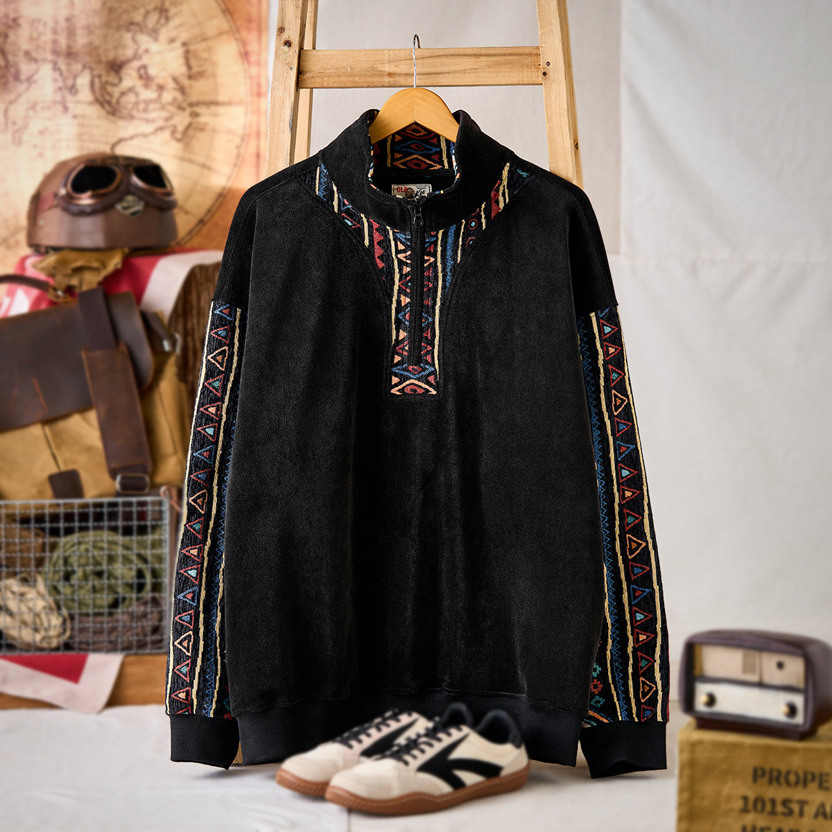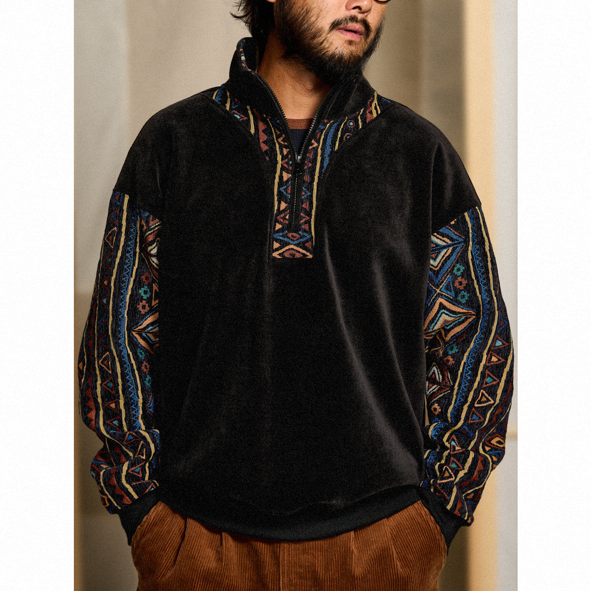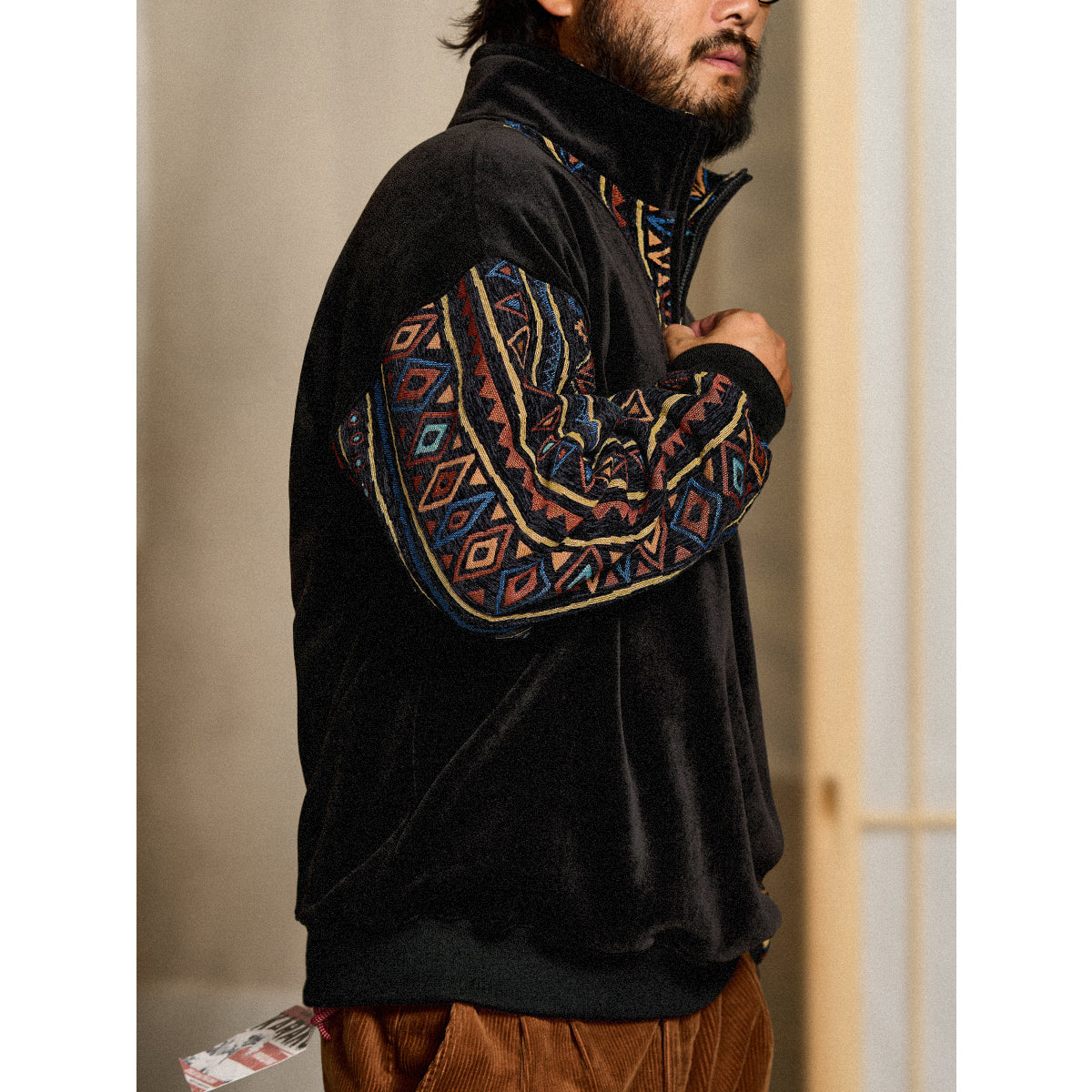 特徴:ハーフジップ/エスニック柄コンビ