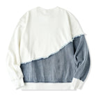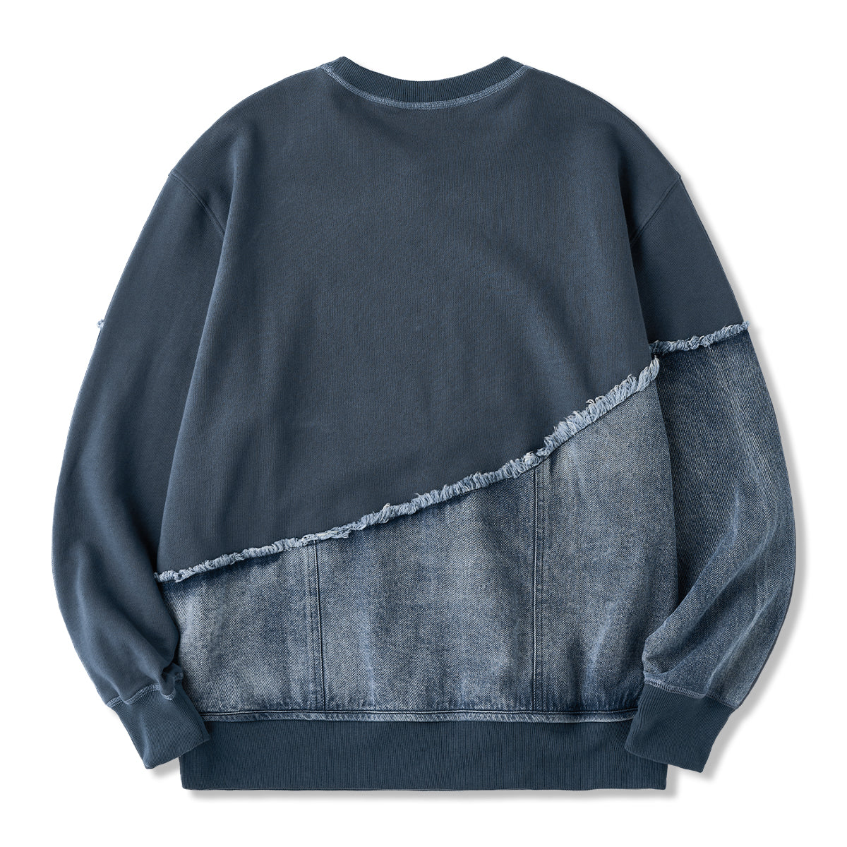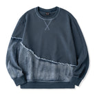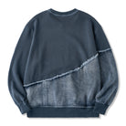 再構築ウォッシュドデニム切替 Vガゼット入りコットンクルーネックスウェット