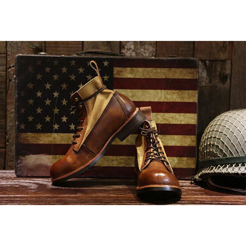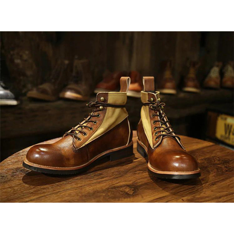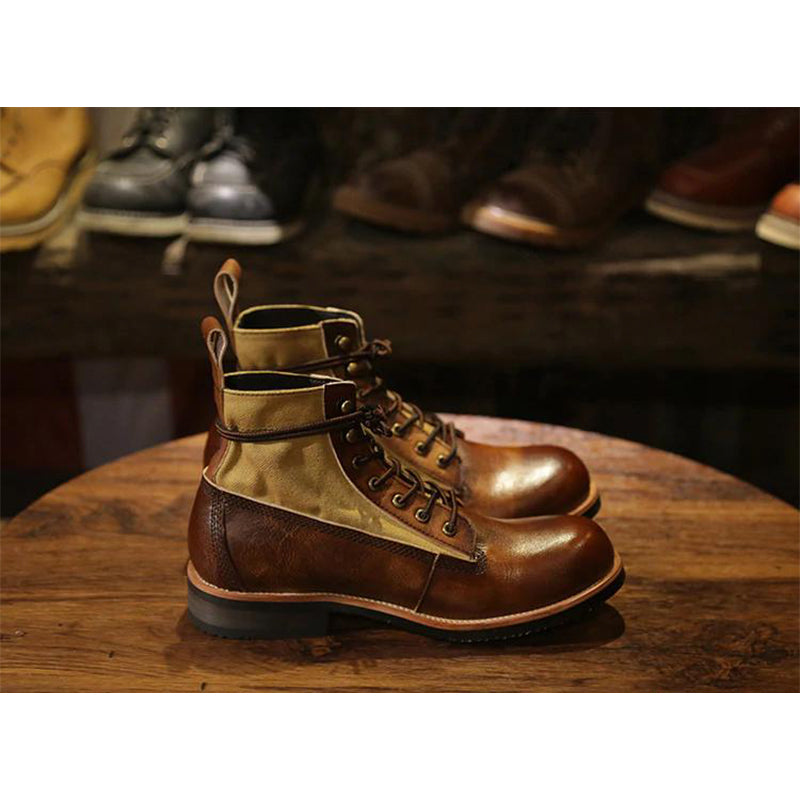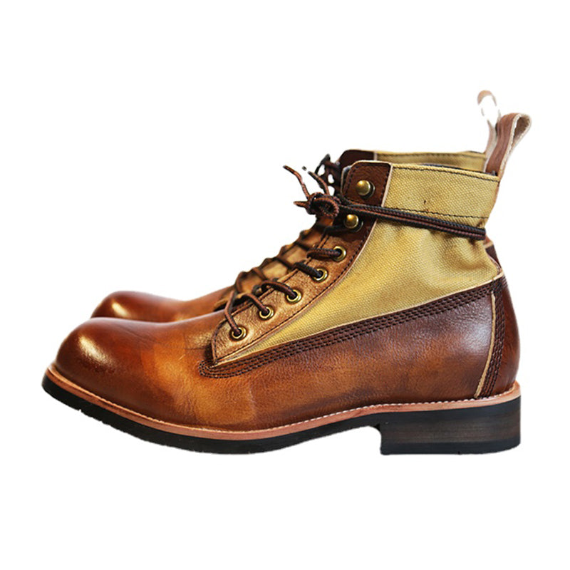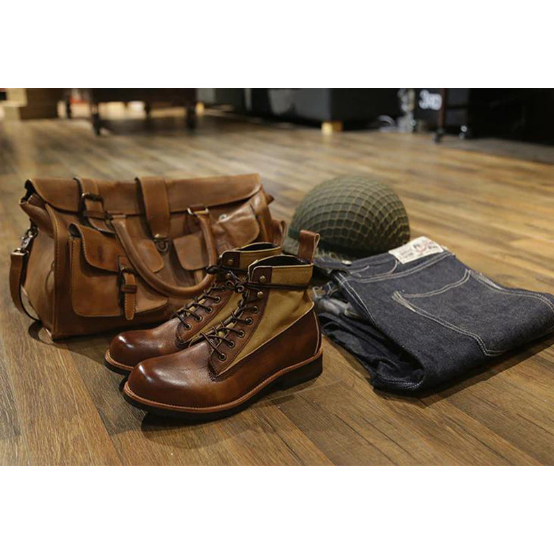 レザートキャンバスのコンビ素材なので、靴自体は重たくなくて、快適に履きやすい。このようなブーツを履く瞬間に、コーデのポイントとなり、オシャレ感と質感をアップされる。